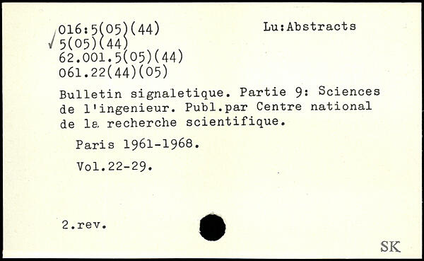 Bulletin signaletique. Partie 9: Sciences de 1.ingénieur. Publ.par Centre national de la recherche scientifique.