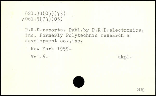 ?,R.D,reports, Publ,by P0R.D.electronics, inc. Formerly Polytechnic research & development co0,inc0