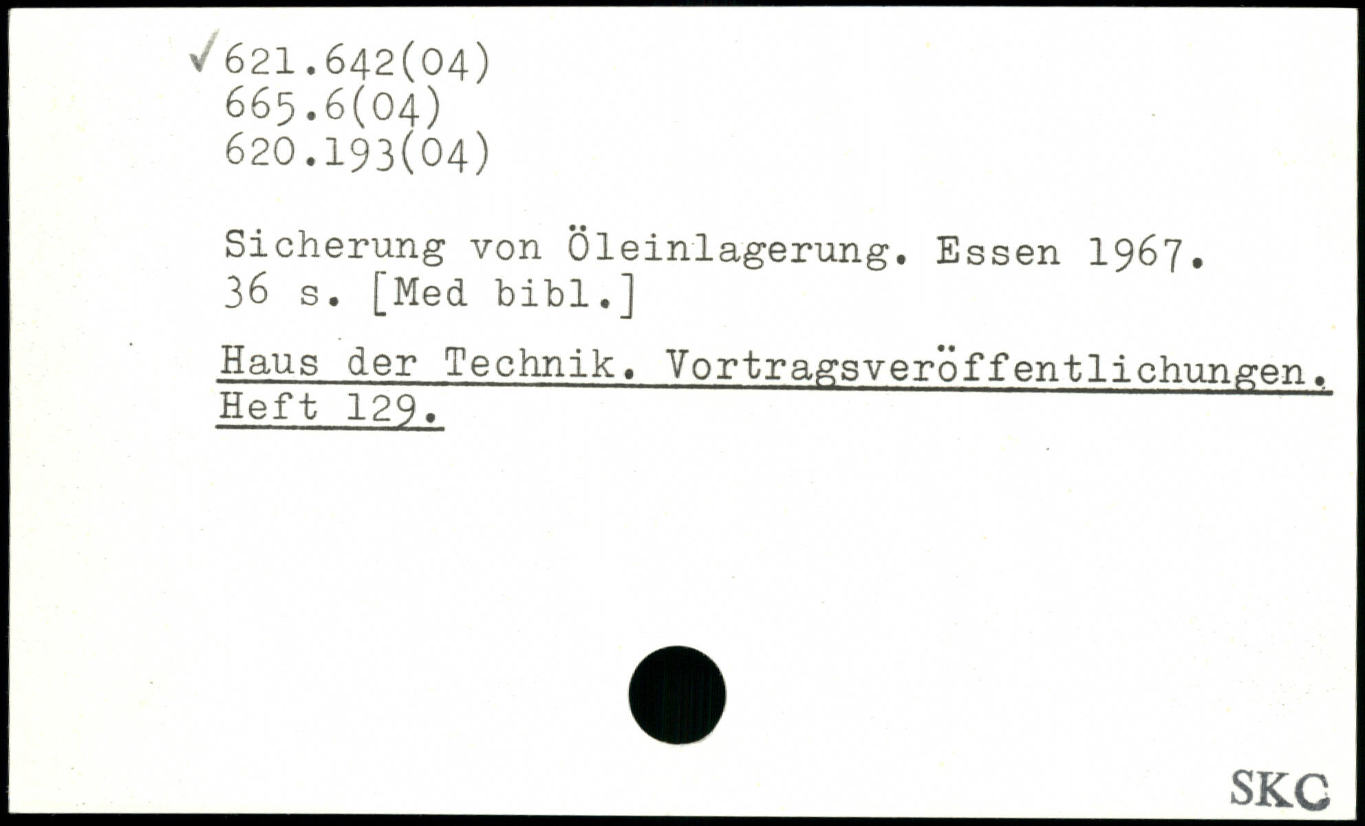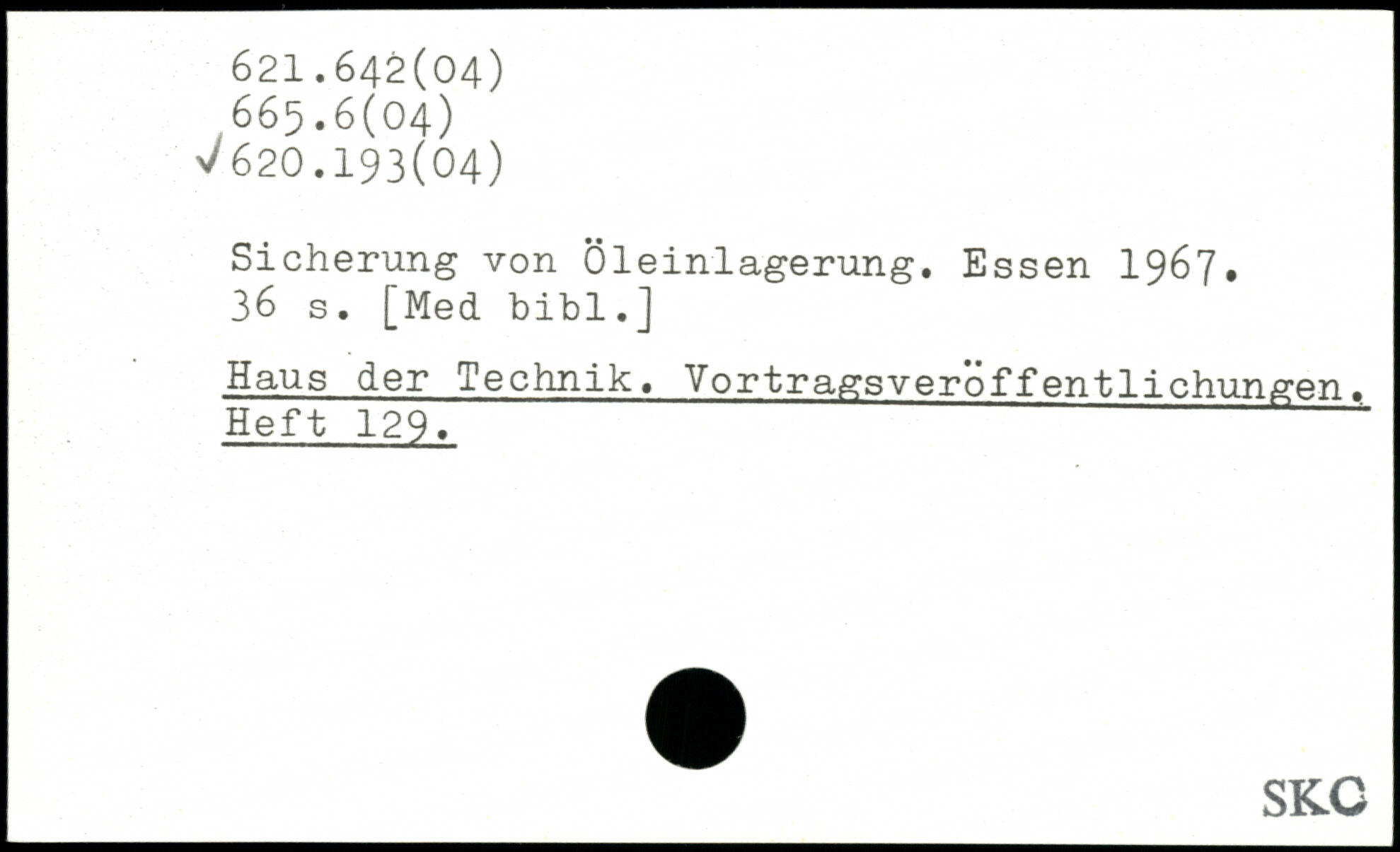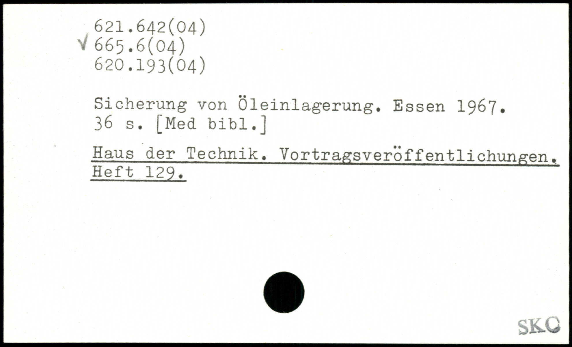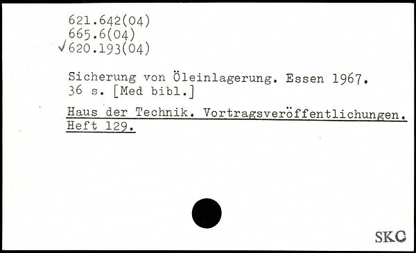 Sicherung von Öleinlagerung.