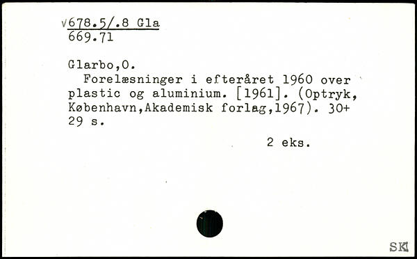 Forelæsninger i efteråret 1960 over ‘ plastic og aluminium. [1961]. (