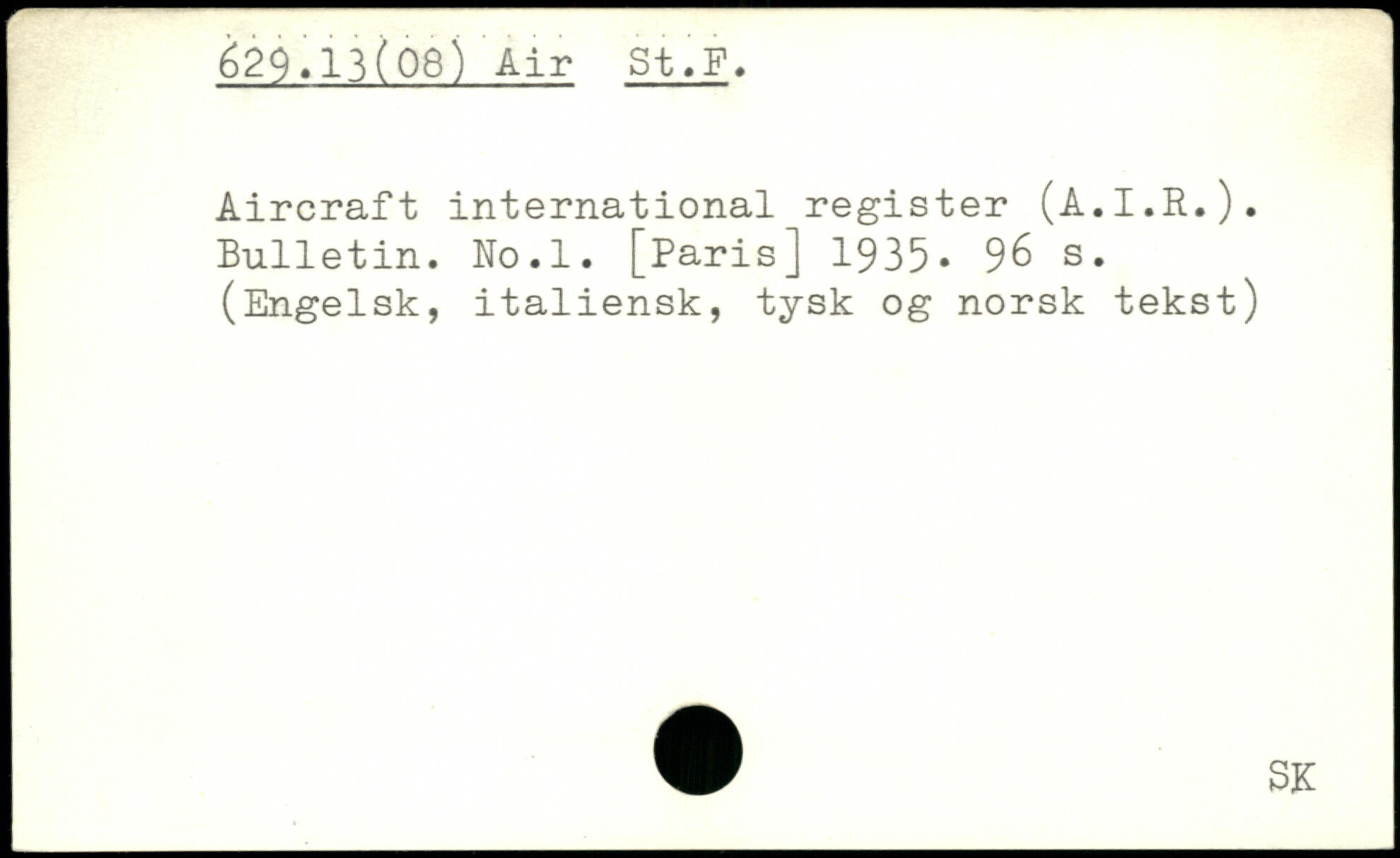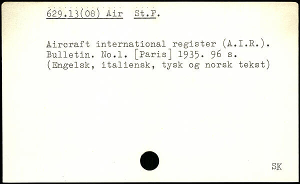Aircraft international register (A.I.R.). Bulletin. No.l.