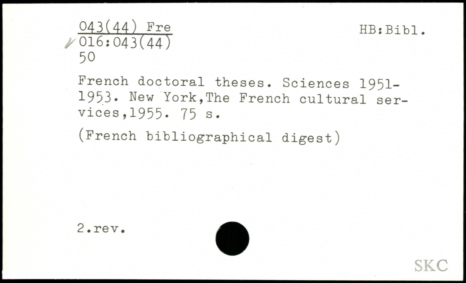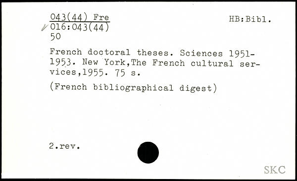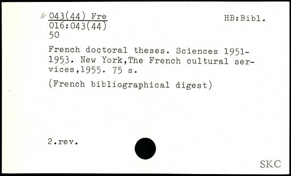 UDK: 016:043(44), 50, 043(44) Fre