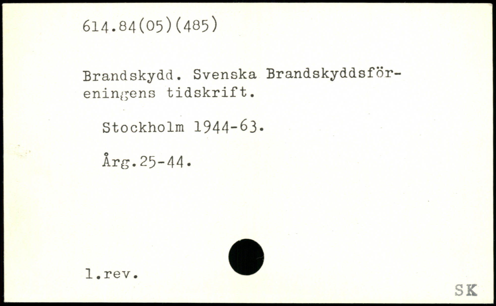 Brandskydd. Svenska Brandskyddsföreningens tidskrift.