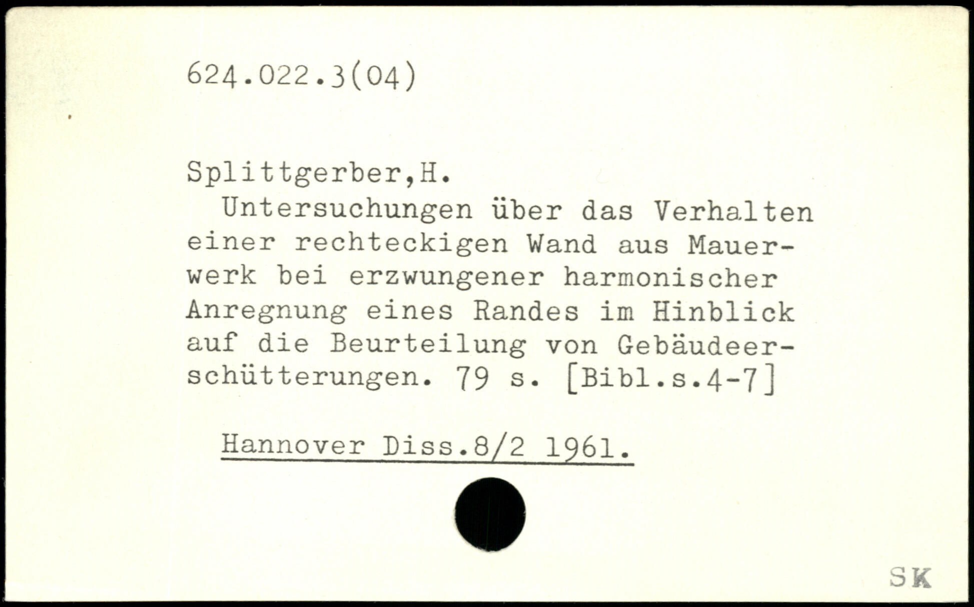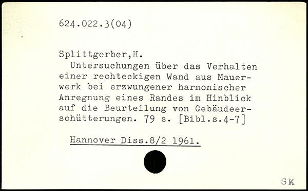Untersuchungen über das Verhalten einer rechteckigen Wand aus Mauerwerk bei erzwungener harmonischer Anregnung eines Randes im Hinblick auf die Beurteilung von Gebäudeerschütterungen.