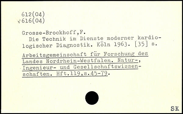 Die Technik im Dienste moderner kardio-logischer Diagnostik. Köln 19^3, Arbeitsgemeinschaft für Forschung des Landes Nordrhein-Westfalen. Natur-, Ingenieur— und Gesellschaftswissenschaften. Hft.119<s.45-79