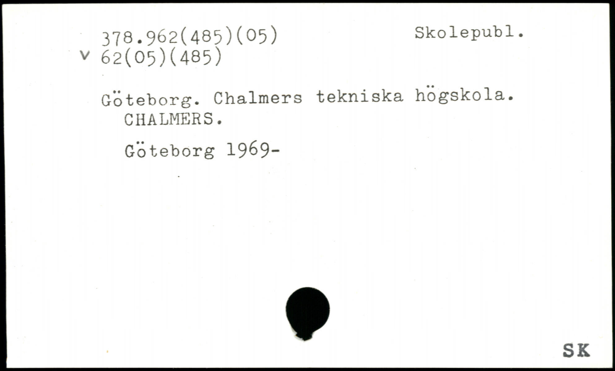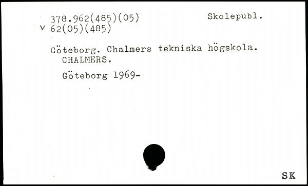 Göteborg. Chalmers tekniska högskola. CHALMERS. Göteborg 1969- 9