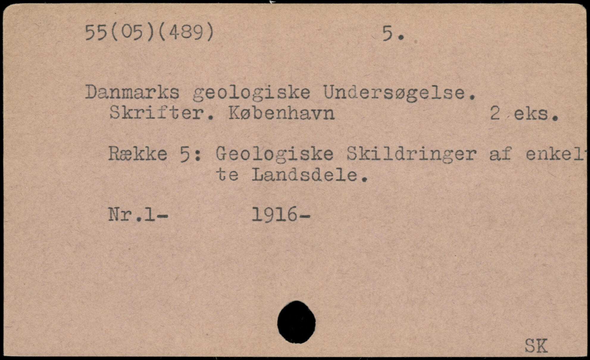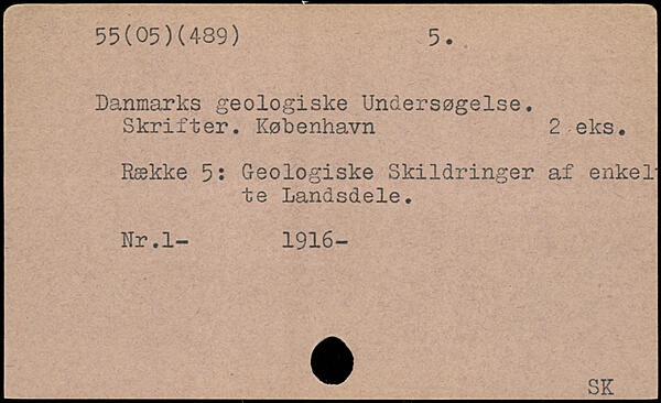 Danmarks geologiske Undersøgelse. Skrifter. København 2 eks. Række 5: Geologiske Skildringer af enkelte Landsdele. Ur.l- 1916- _^_SK