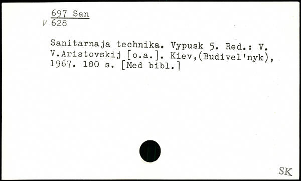 Sanitarnaja technika. Vypusk 5. Red.: V. V.Aristovskij [o.a.], Kiev,(Budivel1nyk) 1967.