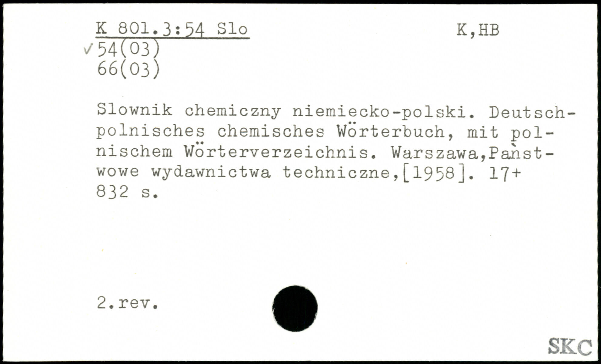 Slownik chemiczny niemiecko-polski. Deutschpolnisches chemisches Wörterbuch, mit polnischem Wörterverzeichnis.