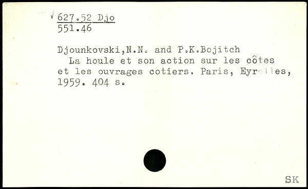 Djounkovski,N.Nc and PoK.Bojitch La houle et son action sur les cotes et les ouvrages cotiers.