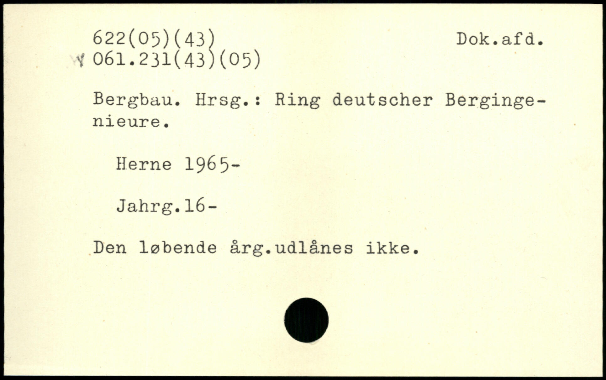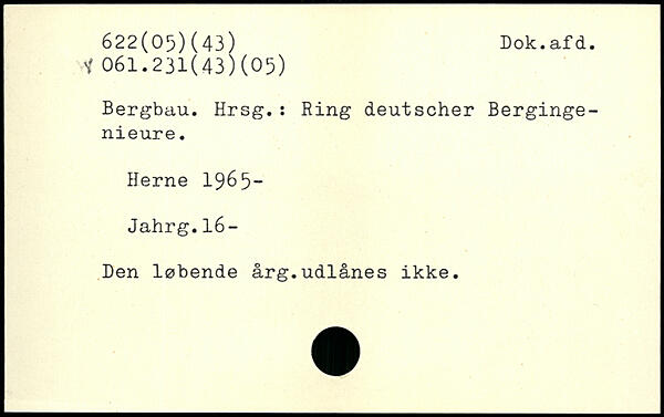Bergbau. Hrsg.: Ring deutscher Bergingenieure. Herne 1965- Jahrg.16- Den løbende årg.udlånes ikke.