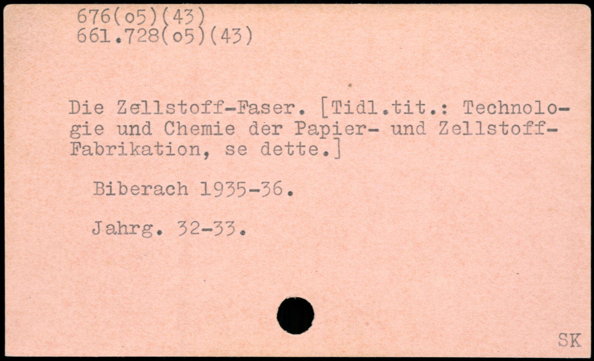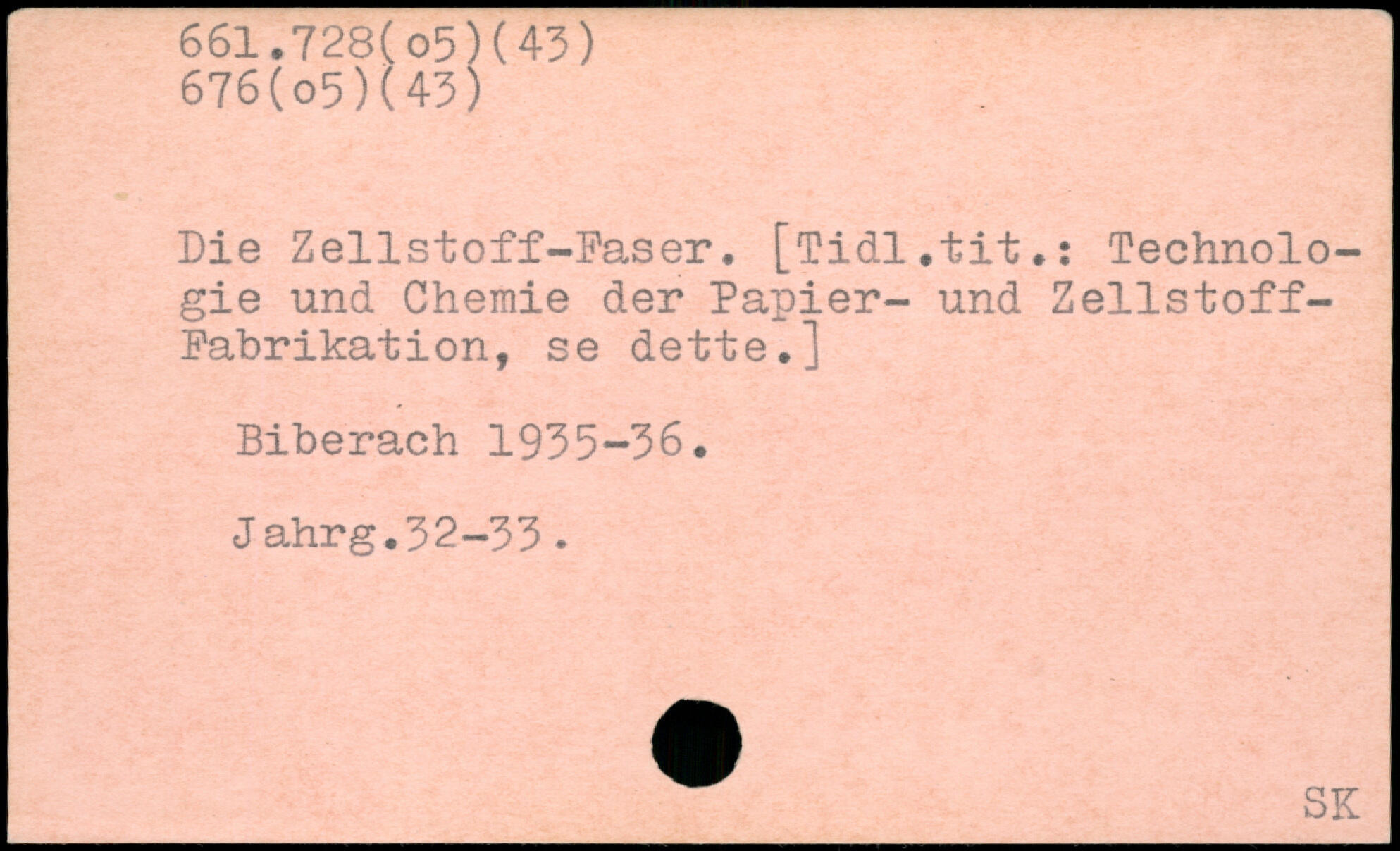 Die Zellstoff-Faser. [Tidl.tit.: Technologie und Chemie der Papier- und Zellstoff-Fabrikation, se dette.] Biberach 1935-36. Jahrg. 32-33.