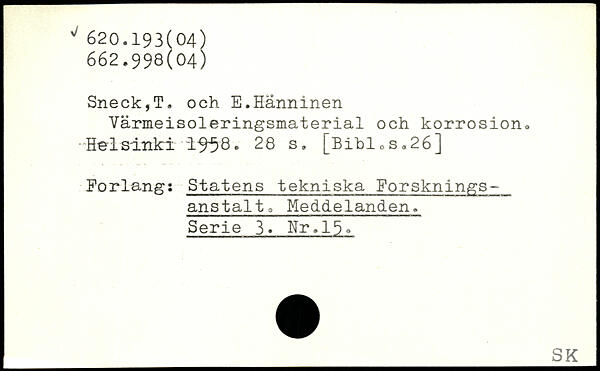 Sneck,T, och E.Hanninen Värmeisoleringsmaterial och korrosion, Helsinki 19^8.
