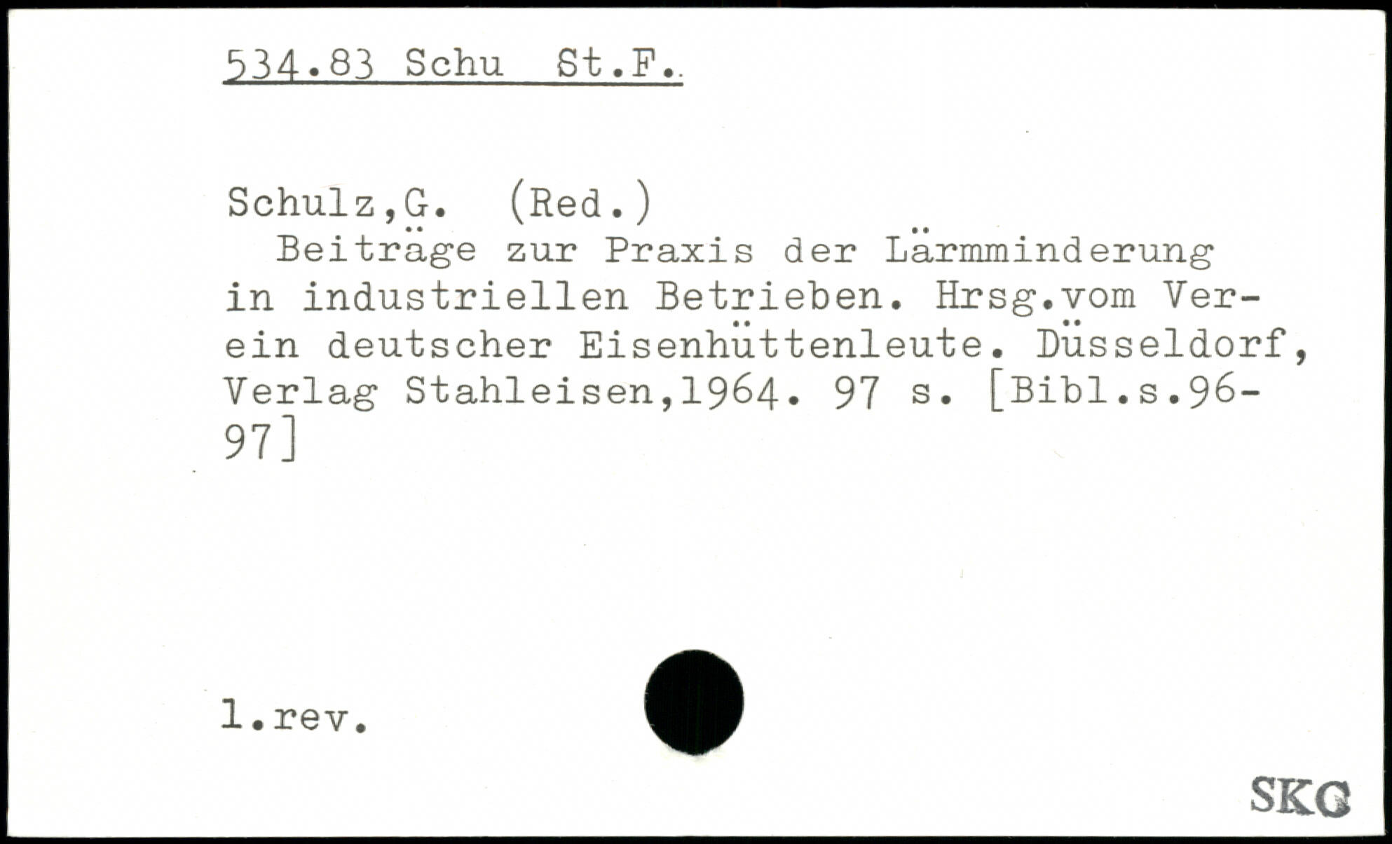 Beitrage zur Praxis der Larmminderung in industriellen Betrieben. Hrsg.vom Verein deutscher Eisenhuttenleute. Düsseldorf, Verlag Stahleisen,19^4.
