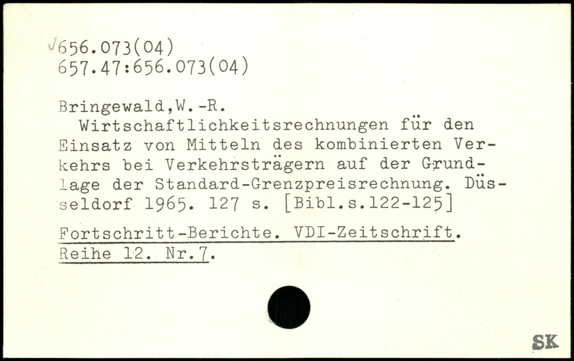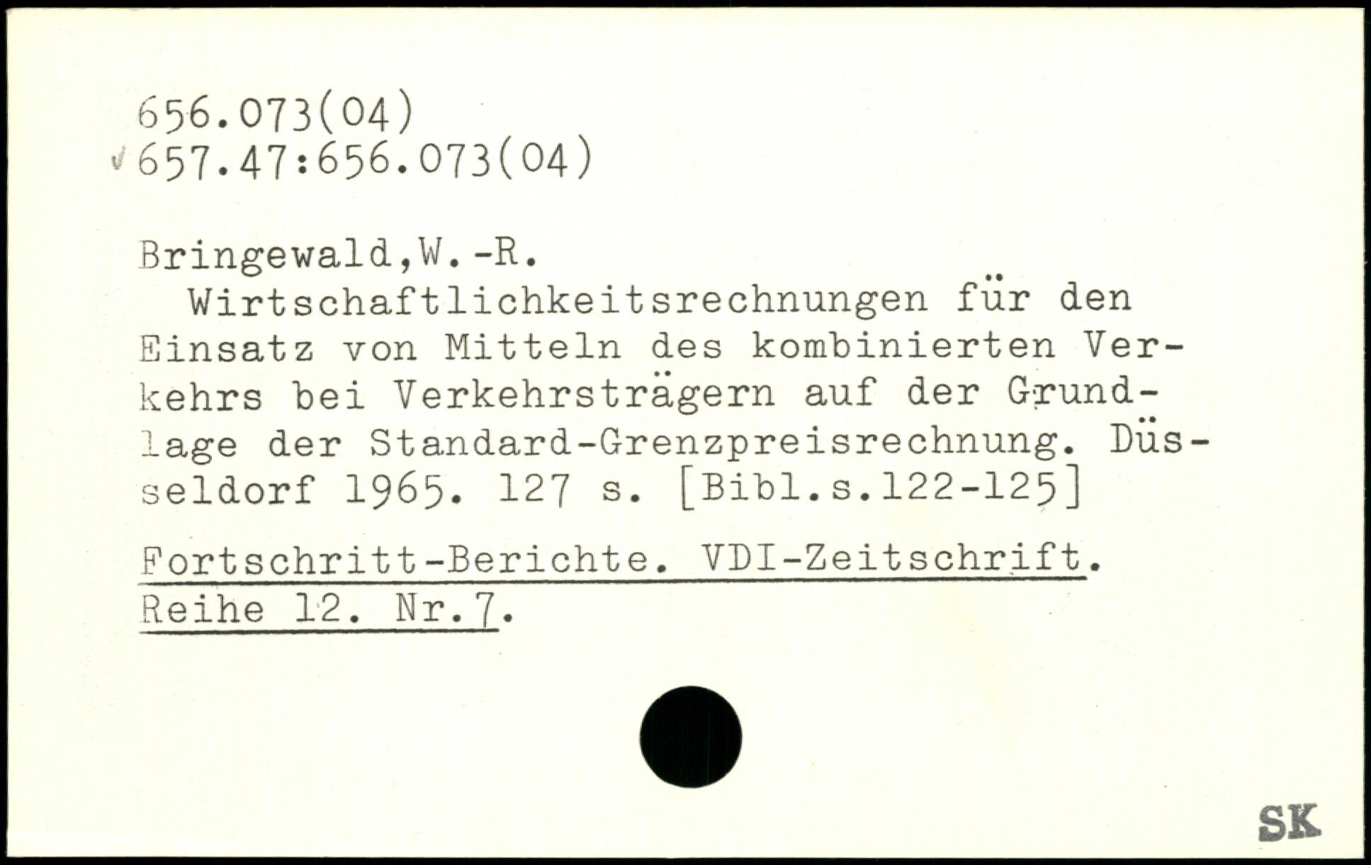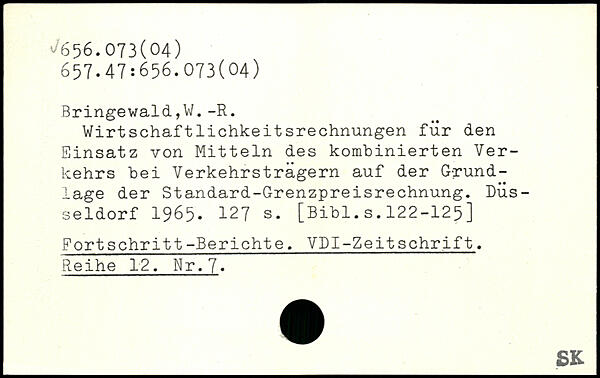 Wirtschaftlichkeitsrechnungen für den Einsatz von Mitteln des kombinierten Verkehrs bei Verkehrsträgern auf der Grundlage der Standard-Grenzpreisrechnung. Düsseldorf 1965.