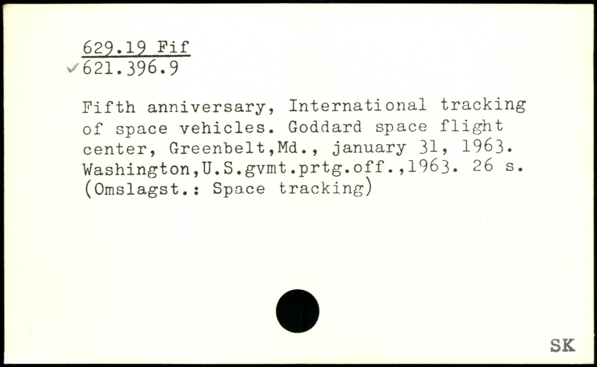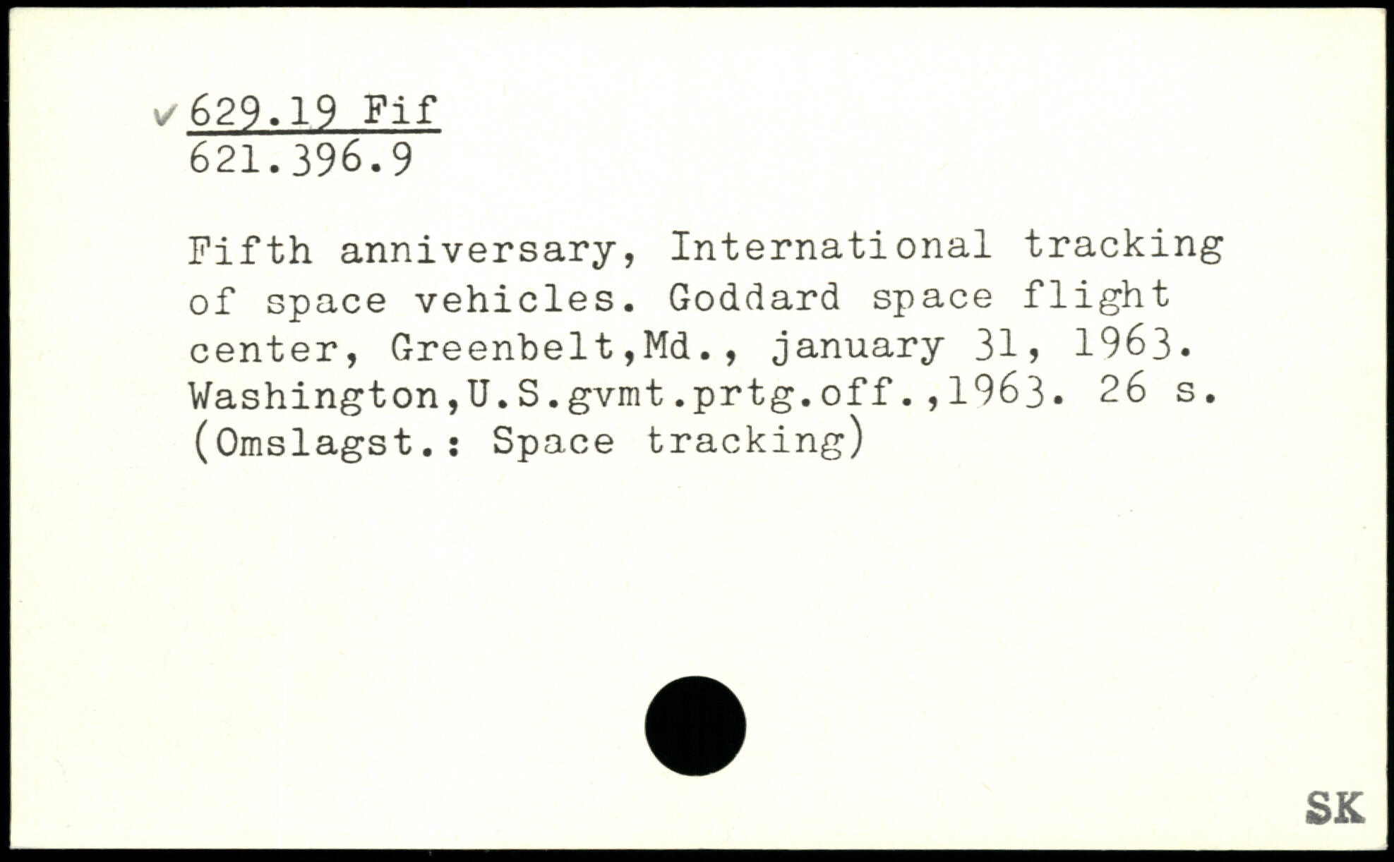 Fifth anniversary, International tracking of space vehicles. Goddard space flight center, Greenbelt,Md., January 31, 1963. Washington,U.S.gvmt.prtg.off.,1963.