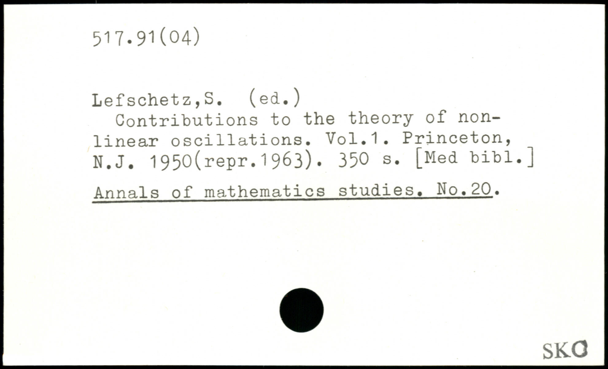 Contributions to the theory of nonlinear oscillations.