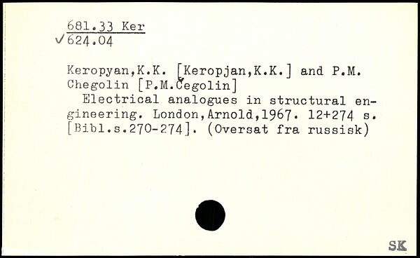 Keropyan,K.K. [Keropjan,K.K.] and P.M. Chegolin [P,M.Cegolin] Electrical analogues in structural engineering.