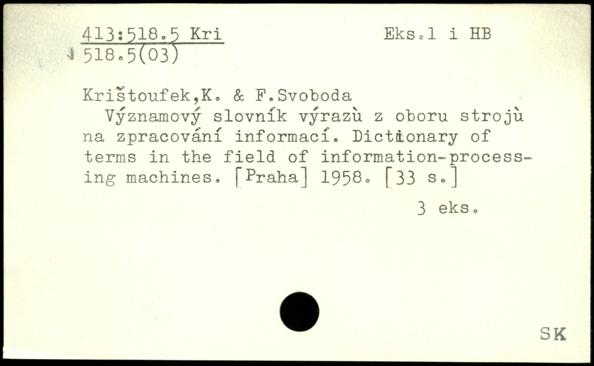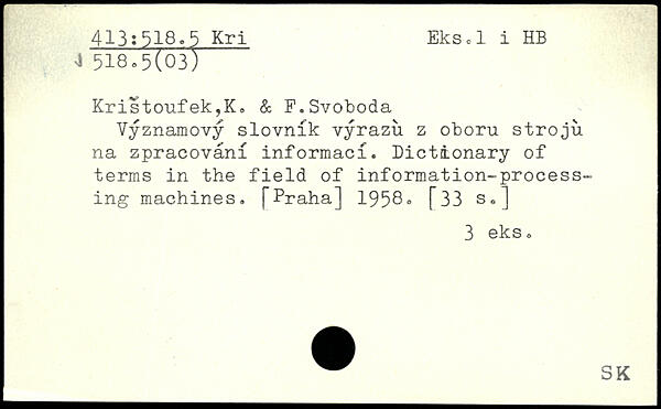 Kristoufek,K, & F.Svoboda Vyznamovy slovnik vyrazu z oboru stroju na zpracovani informaci. Dictionary of terms in the field of information-processing machines.