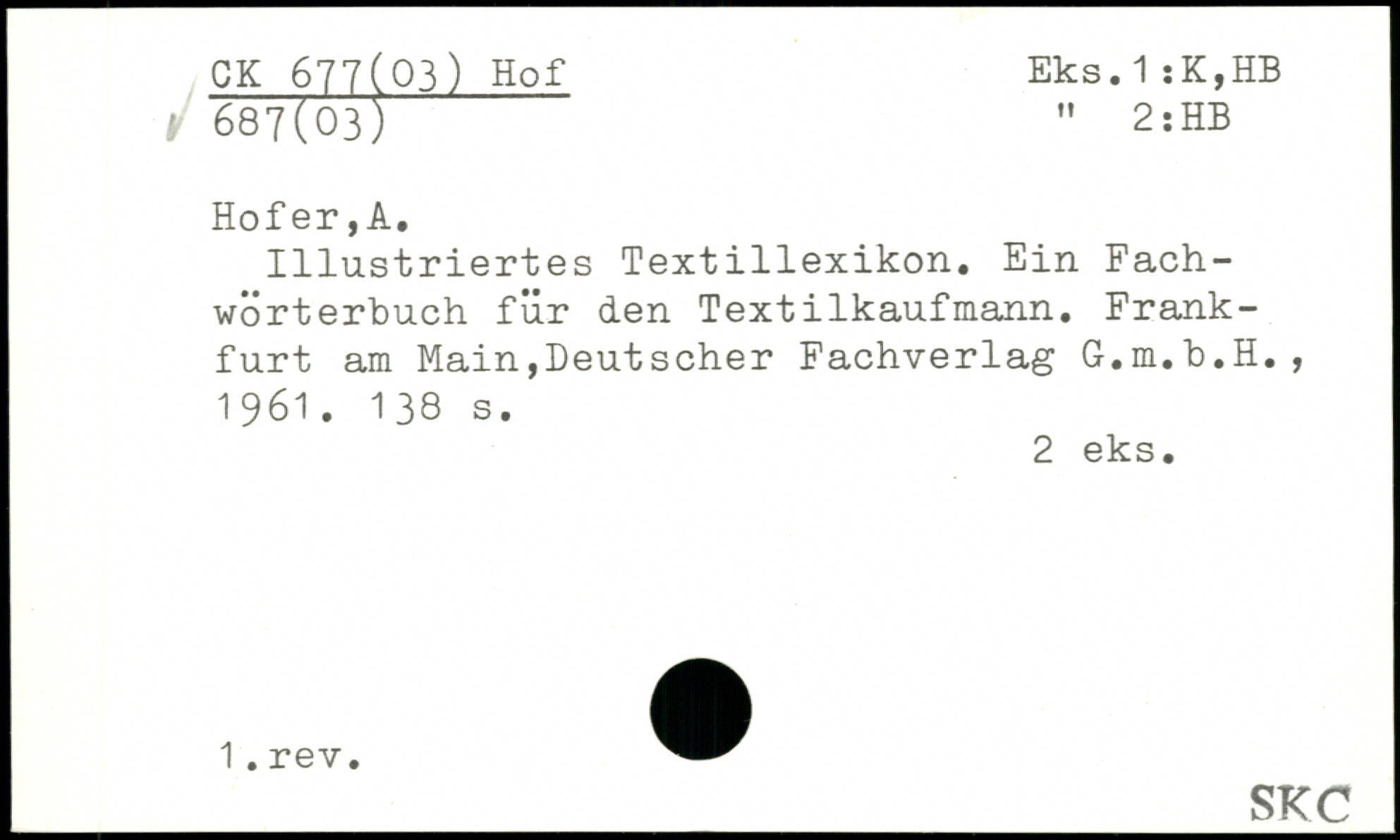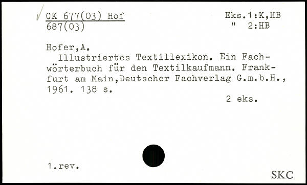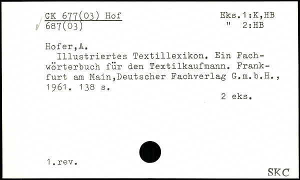 Illustriertes Textillexikon. Ein Fachwörterbuch für den Textilkaufmann. Frankfurt am Main,Deut scher Fachverlag G.m.b.H., 1961.