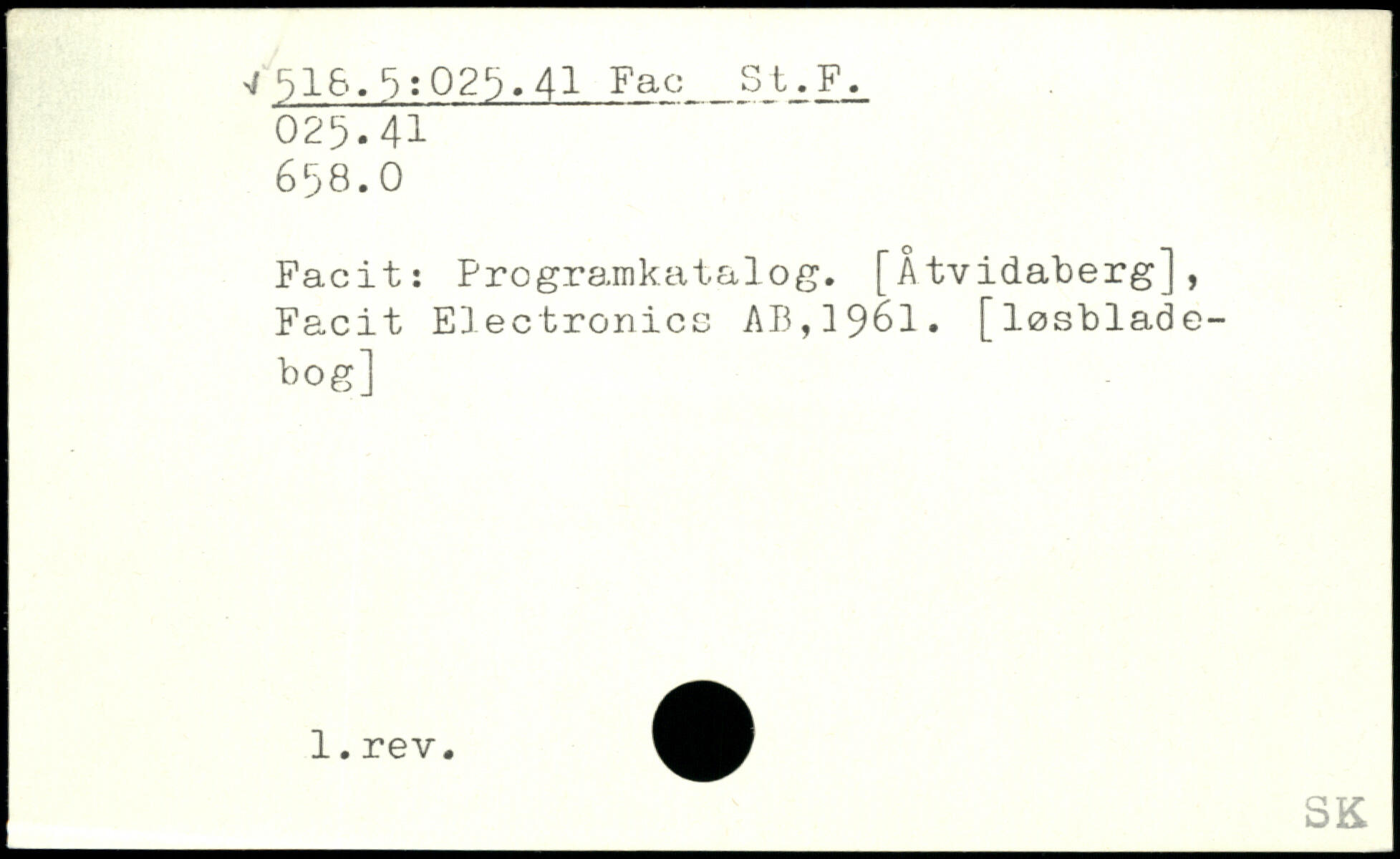 Facit: Programkatalog. [Åtvidaberg], Facit Electronics A B,19 è1. [løsbladebog]