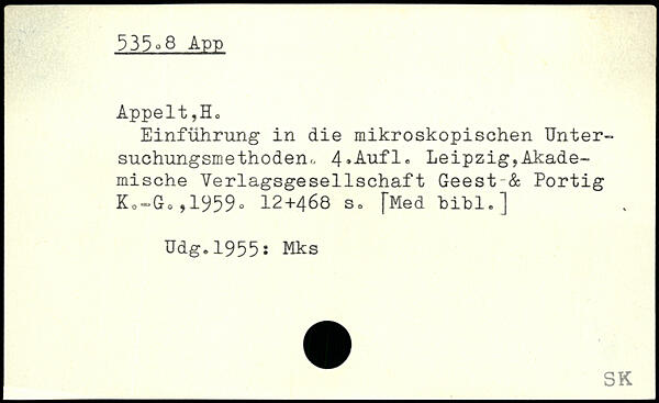 Einführung in die mikroskopischen Untersuchungsmethoden.