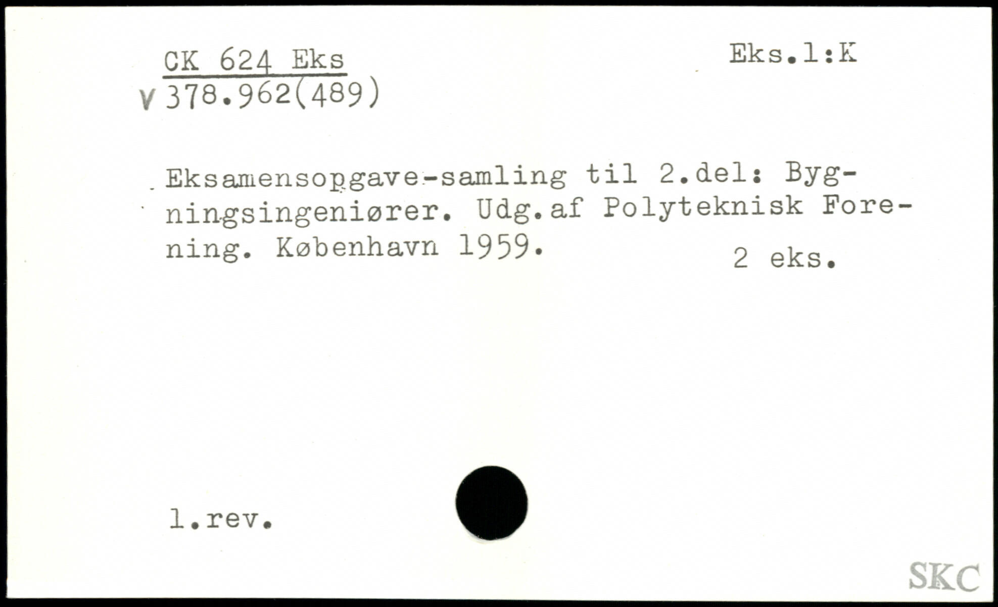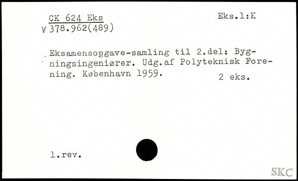 . Eksamensopgave-samling til 2.del: Bygningsingeniører. Udg.af Polyteknisk Forening.