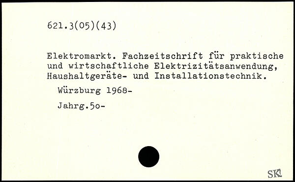 Elektromarkt. Fachzeitschrift für praktische und wirtschaftliche Elektrizitätsanwendung, Haushaltgeräte- und Installationstechnik. Würzburg 1968- Jahrg.5o-