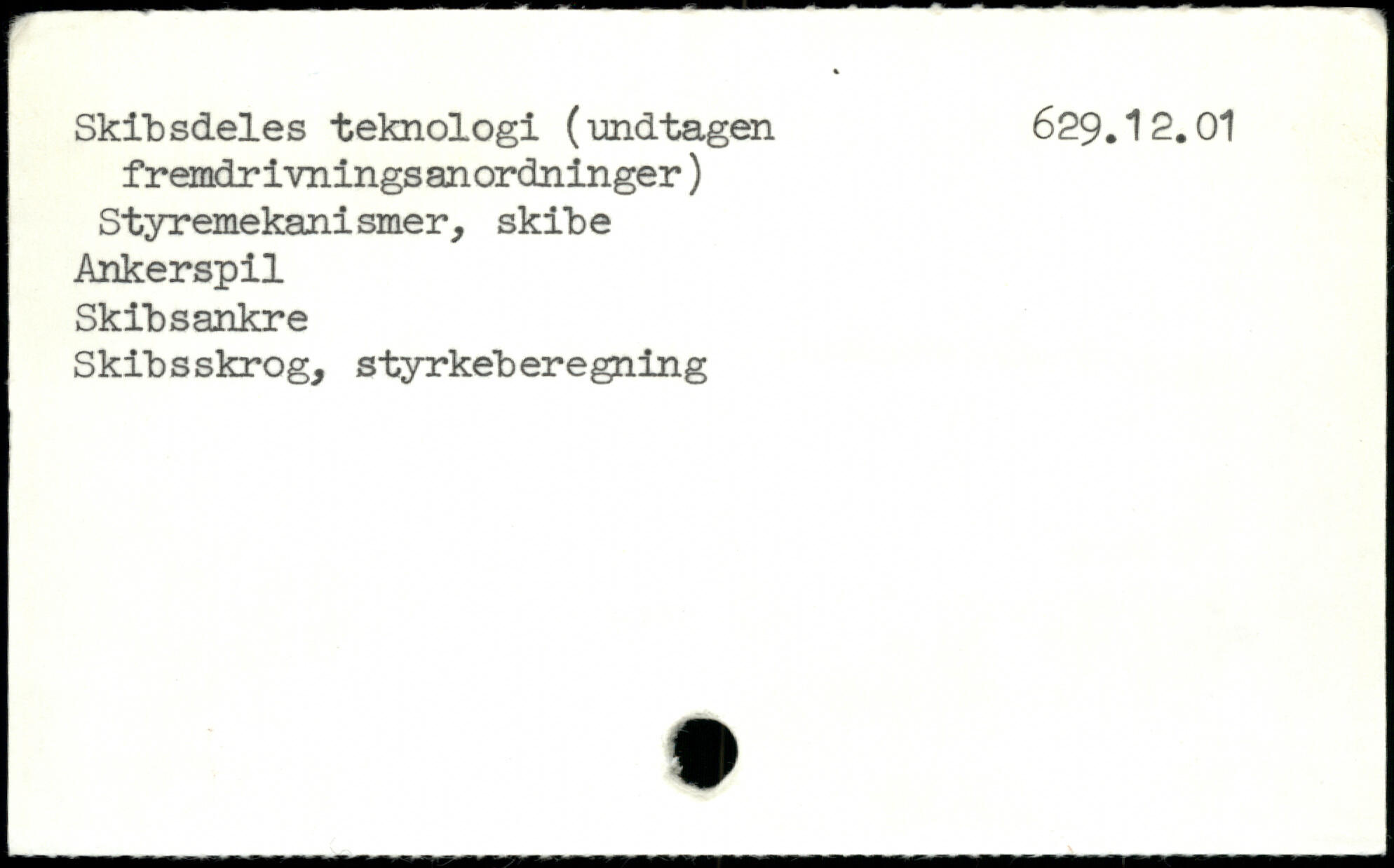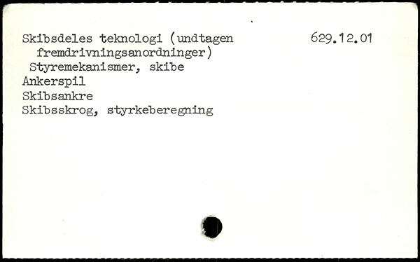 Skibsdeles teknologi (undtagen 629.12.01 fremdrivningsan ordninger) Styremekanismer, skibe Ankerspil Skibsankre Skibsskrog, styrkeberegning