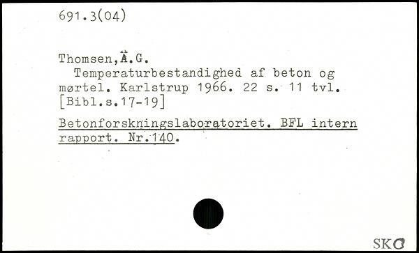 Thomsen,A.G. Temperaturbestandighea af beton og mørtel. Karlstrup 1966.