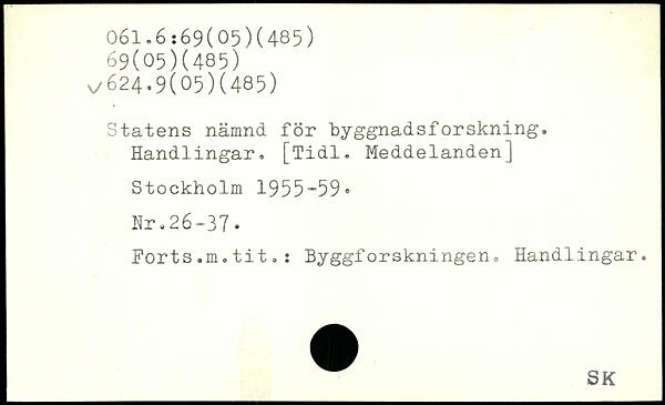 Statens nämnd för byggnadsforskning. Handlingar. [Tidl. Meddelanden]