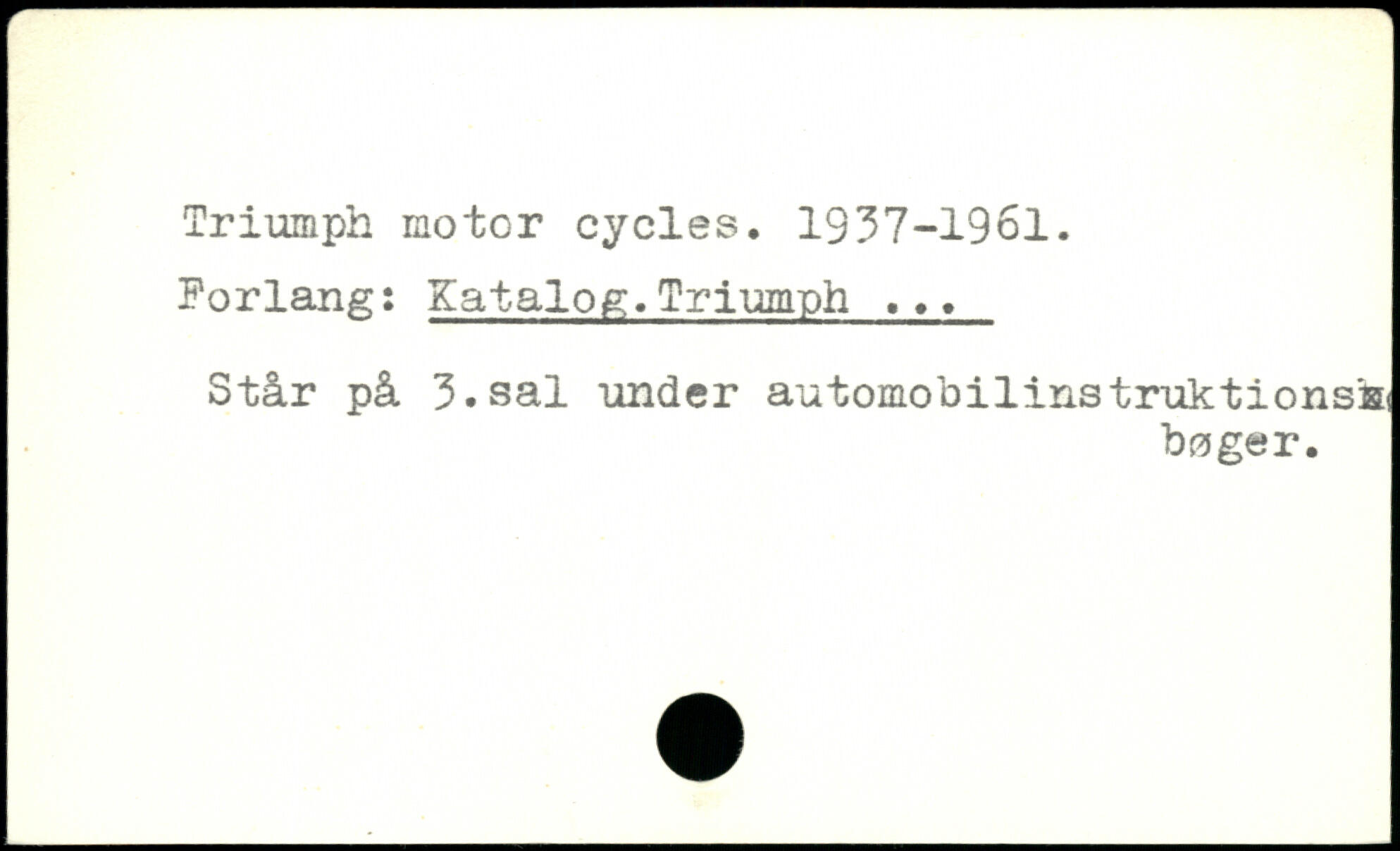 Triumph motor cycles. 1937-1961. Forlang: Katalog.Triumph .., Står på 3. sal under automobilinstruktions'Ki bøger.