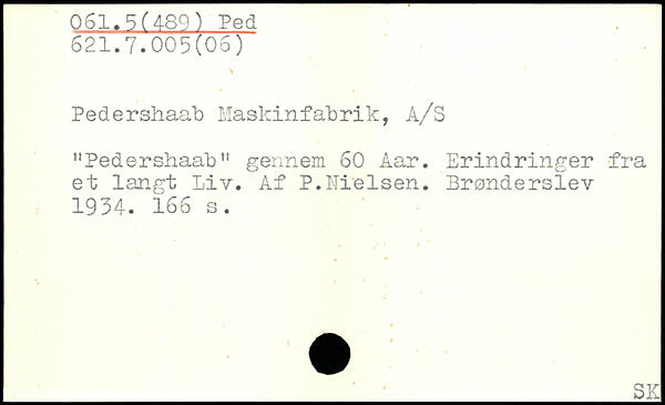 Pedershaab Maskinfabrik, A/S "Pedershaab" gennem 60 Aar. Erindringer fra et langt liv. Af P.Nielsen. Brønderslev 1934.