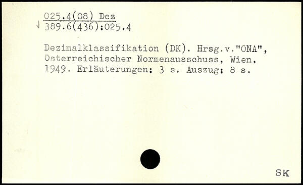 Dezimalklassiiikation (DK). Hrsg.v."ÜNAM, österreichischer