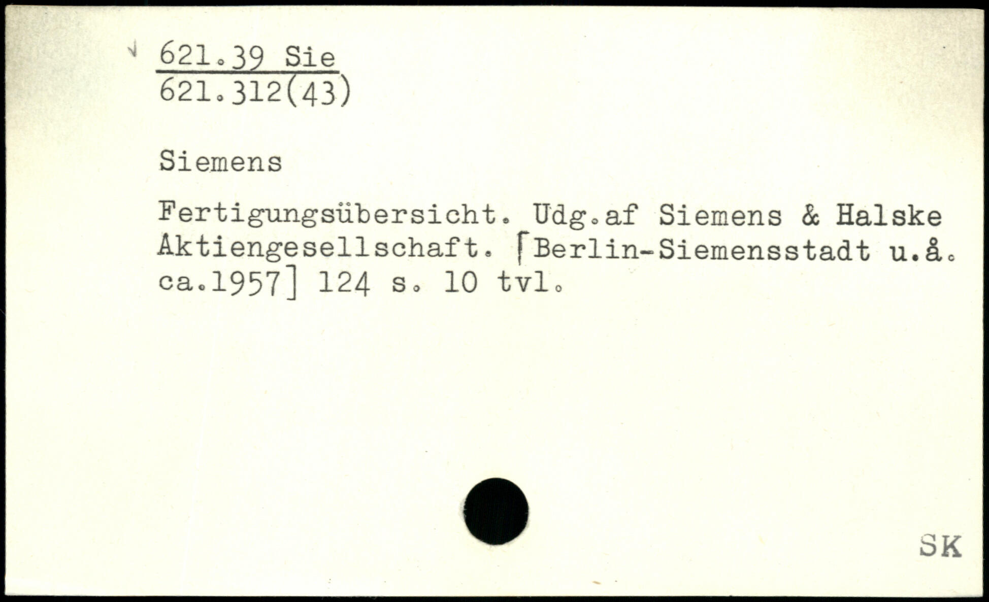 Fertigungsübersicht. U'dg.af Siemens & Halske Aktiengesellschaft. fBerlin-Siemensstadt u.åc ca.1957] I