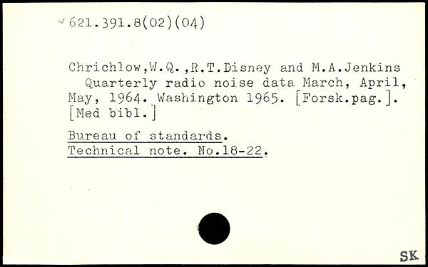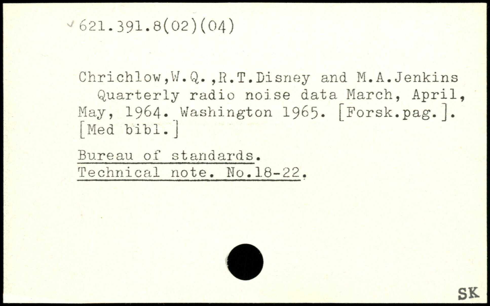 Chrichlow,W.Q.,R.T.Disney and M.A.Jenkins Quarterly radio noise data