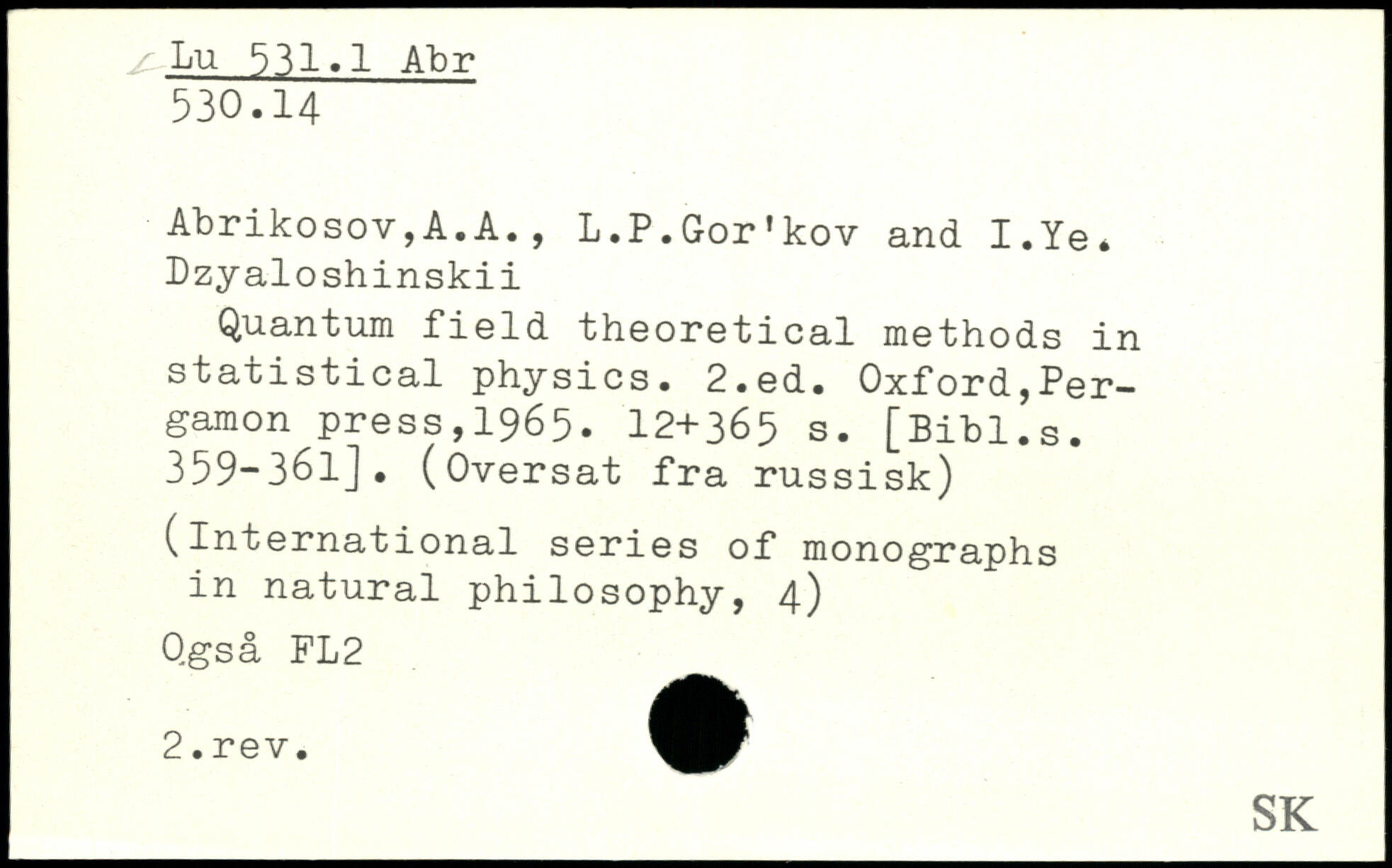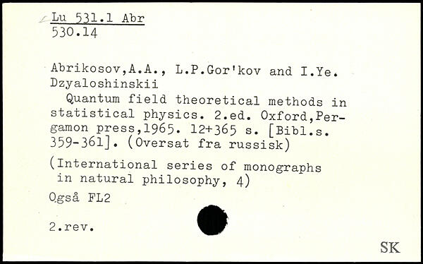 Abrikosov,A.A., L.P.Gor'kov and I.Ye. Dzyaloshinskii Quantum field theoretical methods in statistical physics.