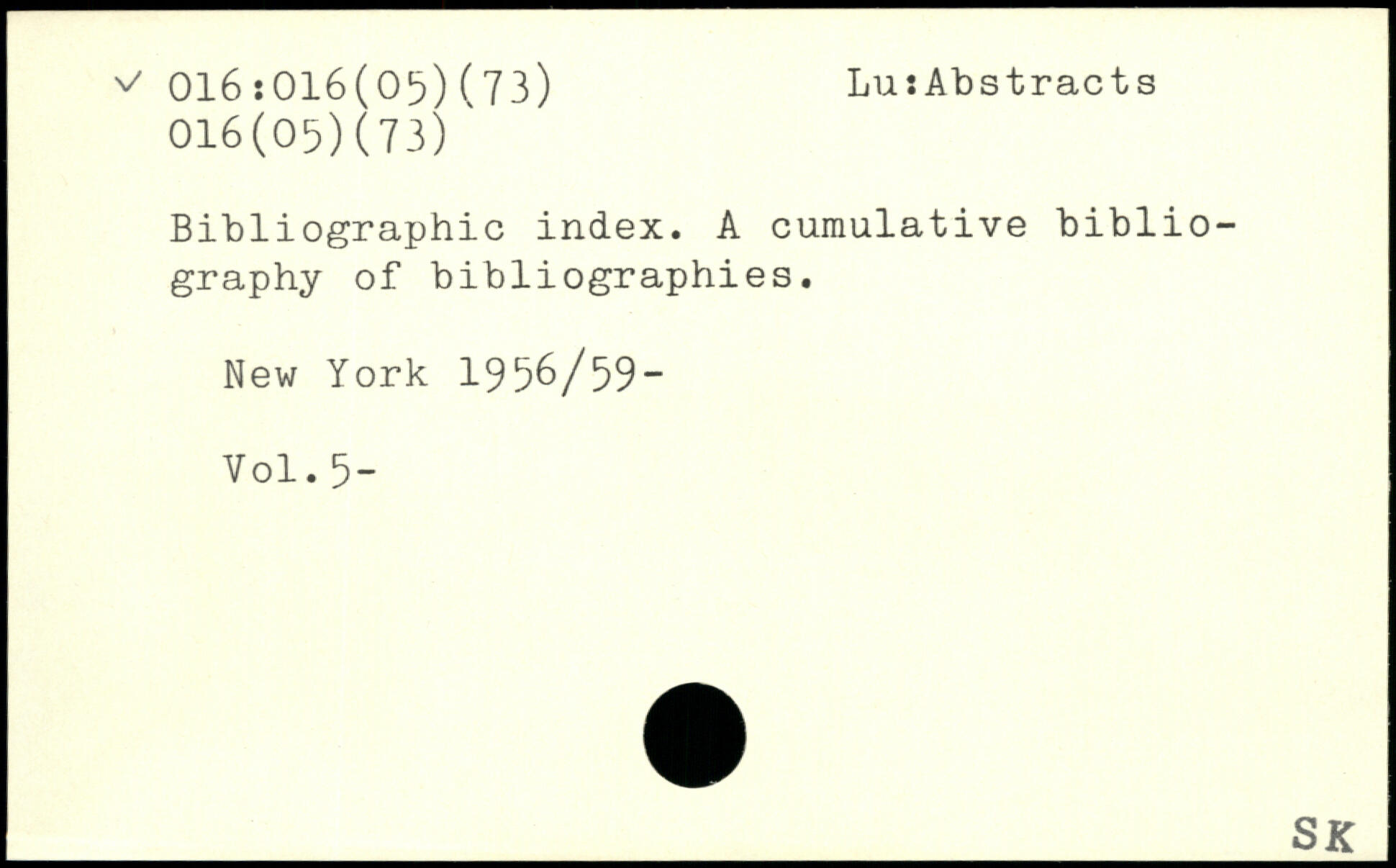 Bibliographic index. A cumulative bibliography of bibliographies.
