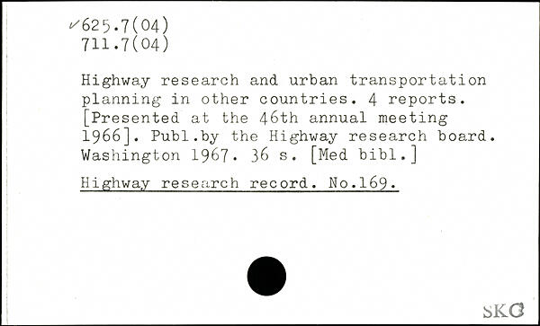Highway research and urban transportation planning in other countries. 4 reports. [Presented at the 46th annual meeting 1966].