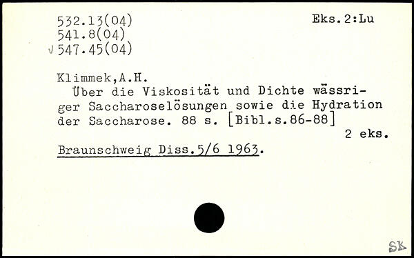 Über die Viskosität und Dichte wässriger Saccharoselösungen sowie die Hydration der Saccharose.