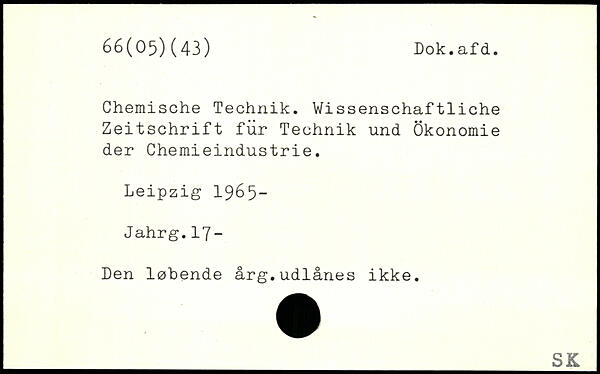 Chemische Technik. Wissenschaftliche Zeitschrift für Technik und Ökonomie der Chemieindustrie.