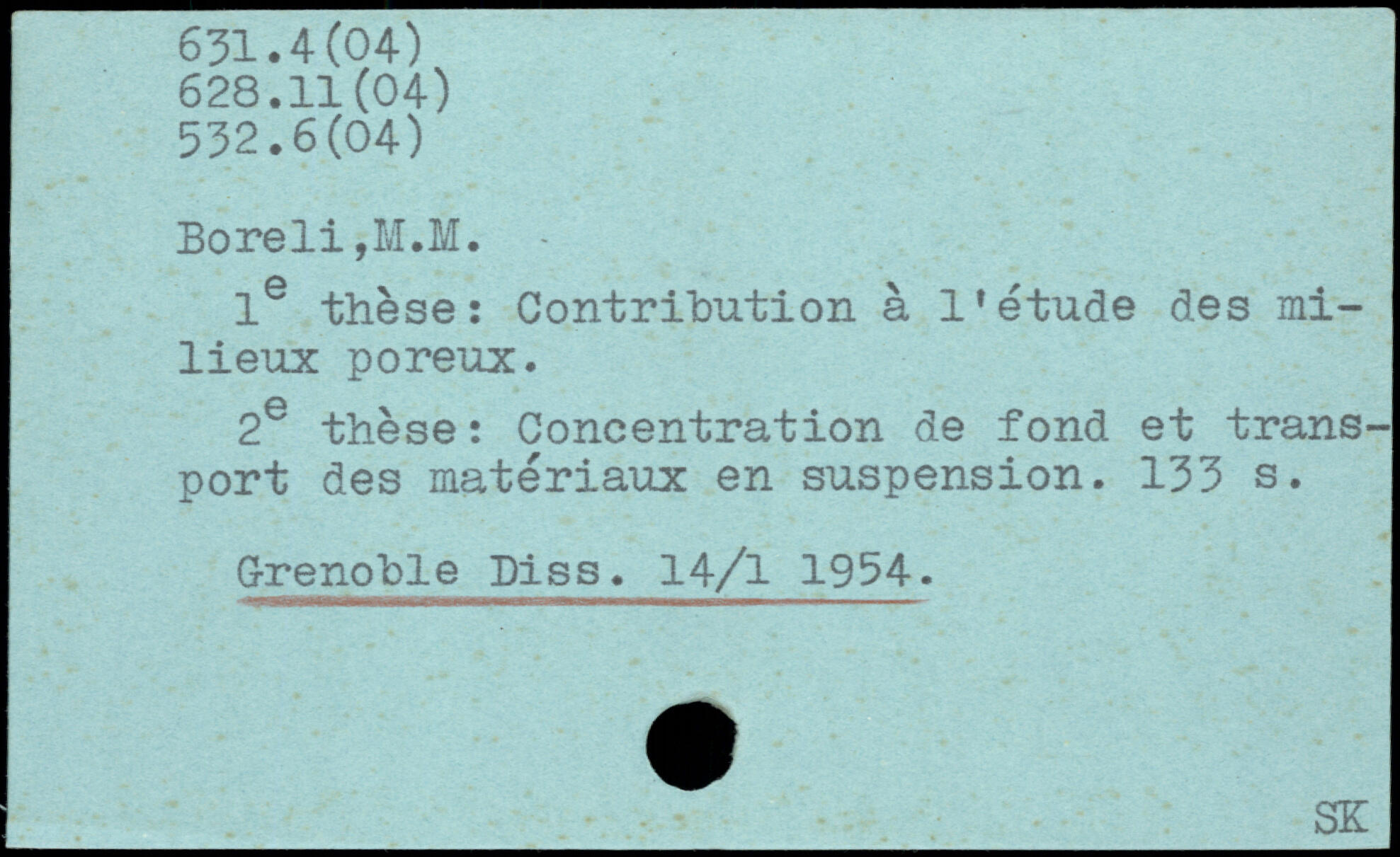 Ie thèse: Contribution à l'étude des milieux poreux. 2e thèse : Concentration de fond et transport des matériaux en suspension.