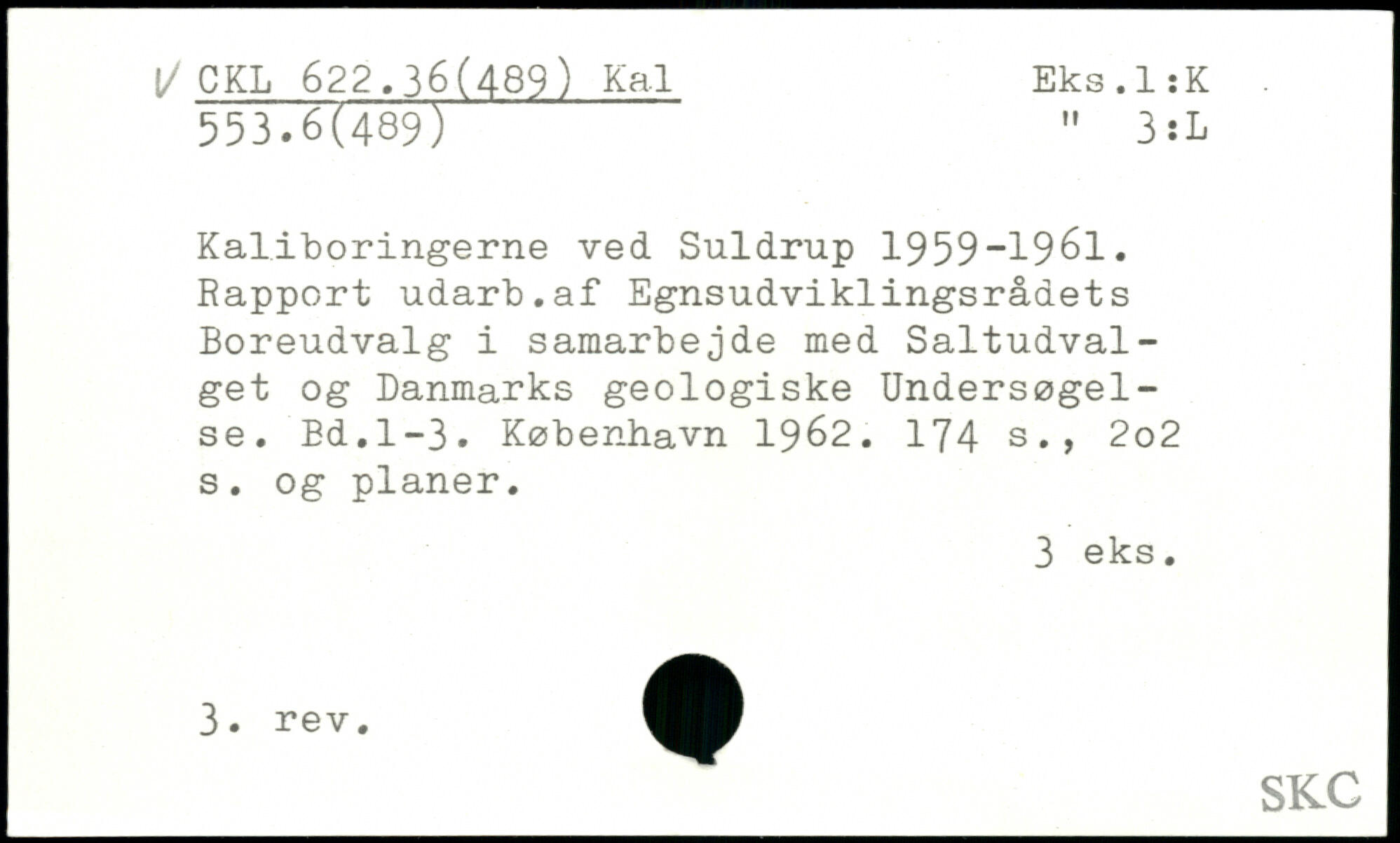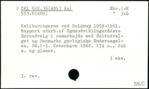 Kaliboringerne ved Suldrup 1959”1961. Rapport udarb.af Egnsudviklingsrådets Boreudvalg i samarbejde med Saltudvalget og Danmarks geologiske Undersøgelse.