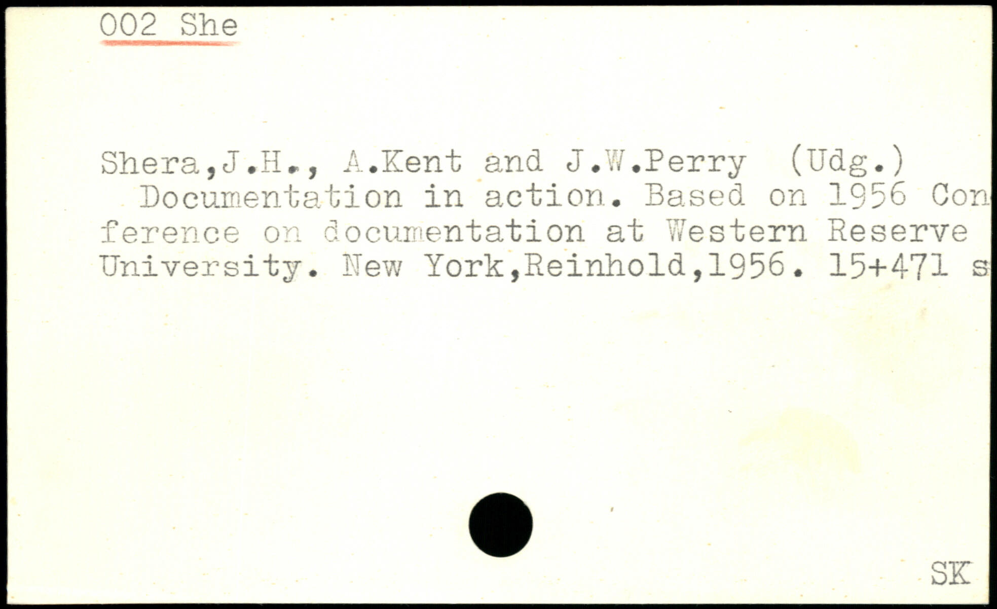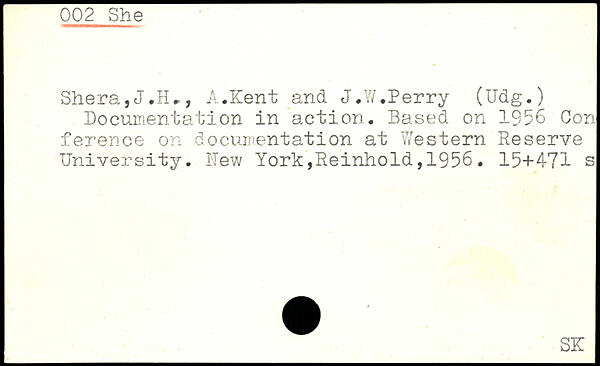 Documentation in action. Based on 1956 Con ference on documentation at Western Reserve University.