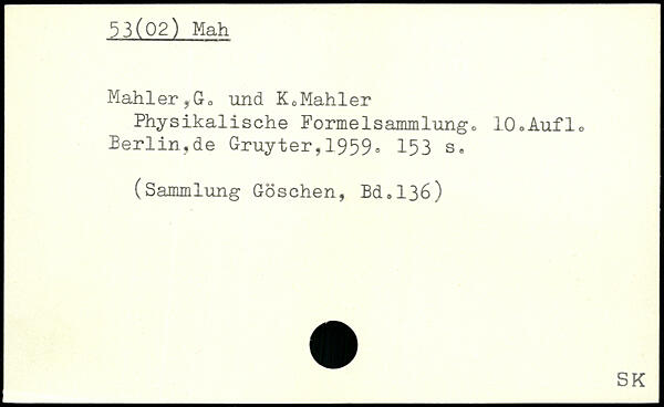 Physikalische Formelsammlung, lO.Auflo Berlin,de Gruyter,1959®