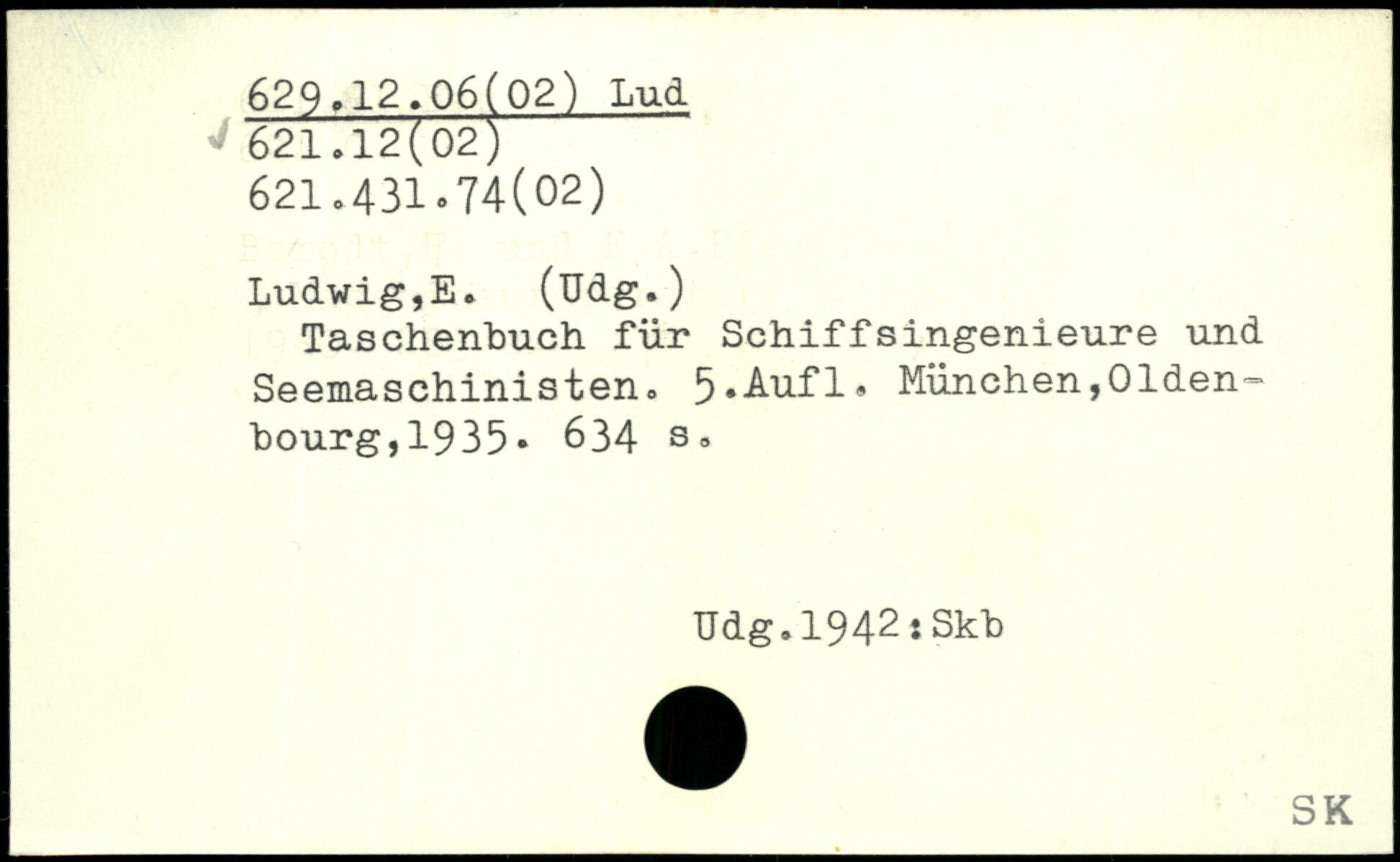 Ludwig,E. (üdg.) Taschenbuch für Schiffsingenieure und Seemaschinisten.