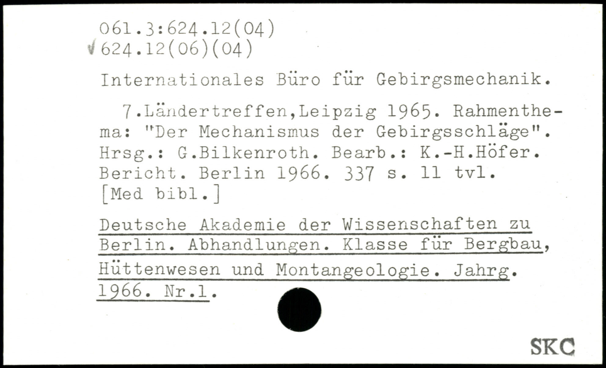 Internationales Büro für Gebirgsmechanik. 7.Ländertreffen