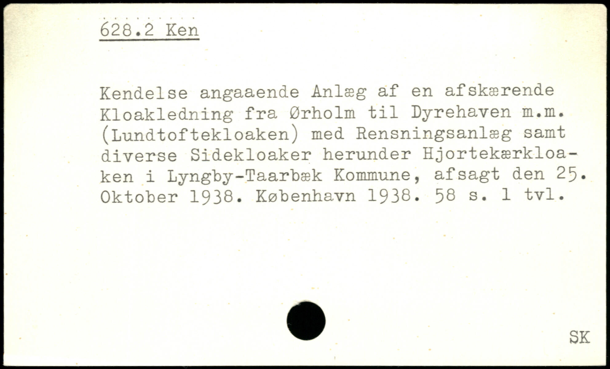 Kendelse angaaende Anlæg af en afskærende Kloakledning fra Ørholm til Dyrehaven m.m. (Lundtoftekloaken) med Rensningsanlæg samt diverse Sidekloaker herunder Hjortekærkloa-ken i Lyngby-Taarbæk Kommune, afsagt den 25. Oktober 1938.