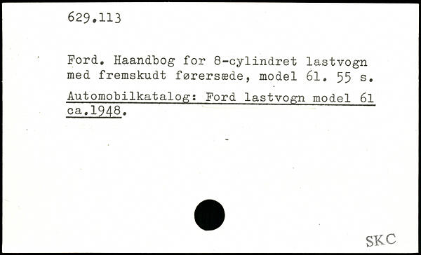 Ford. Haandbog for 8-cylindret lastvogn med fremskudt førersæde, model 6l.
