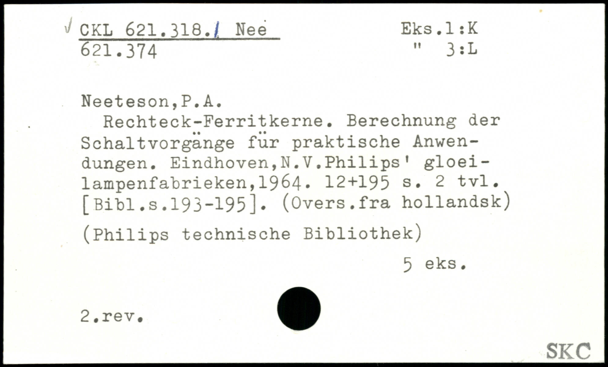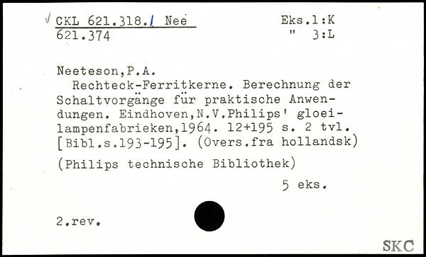 Rechteck-Ferritkerne. Berechnung der Schaltvorgange für praktische Anwendungen. Eindhoven,N.V,Philips' gloei- lampenfabrieken,1964.